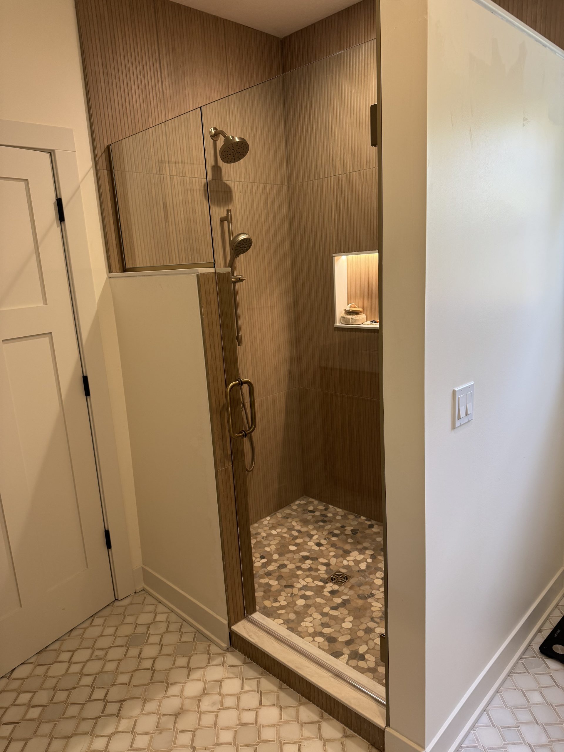 We help our clients design and build their dream shower by offering expertise layout suggestions and coming out to template your shower enclosure for precise installation. We will discuss your glass options along with hardware finish and Clearshield option to help protect your glass from hard water stains and build up.